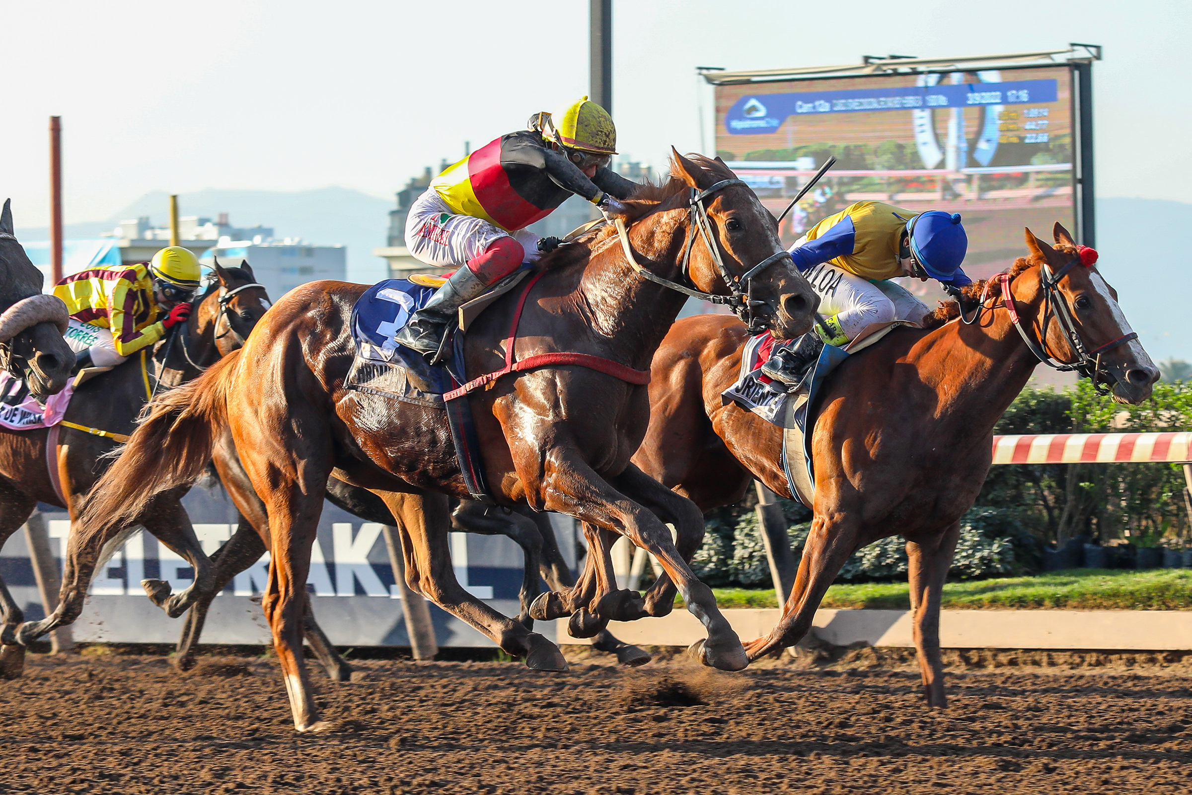 Machos y Hembras 3 años (3a) 2a.Etapa Cuadruple Corona Del Chile: EJEMPLAR SUPLENTE: En caso de producirse un retiro ingresará el ejemplar MISCHELOF con el mandil Nº15 y ocupará el cajón en el partidor del ejemplar retirado. 1600m Arena (Normal) 17:02 hrs.